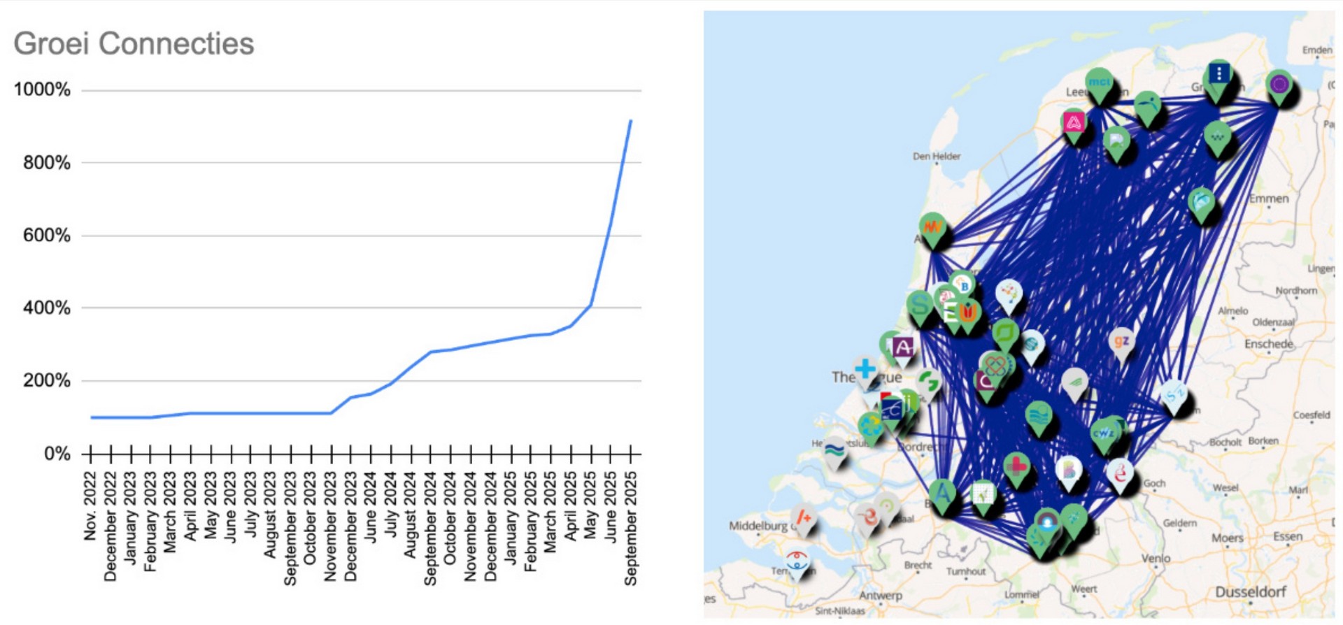 De groei van het aantal onderlinge verbindingen is mede te danken aan de grote inzet van zorginstellingen, Founda Health en Enovation die door middel van een drietal "Koppel Connecthons” hun verbindingen hebben getest zodat ze naar productie konden worden gebracht. Met dank aan Catharina Ziekenhuis, Amsterdam UMC en Radboudumc voor het beschikbaar stellen van ruimte om samen te kunnen komen.